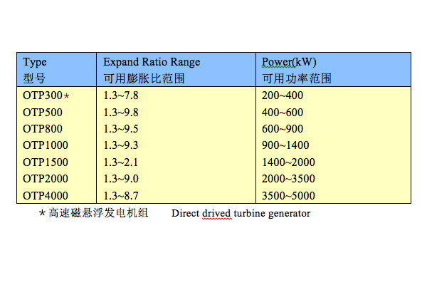 徑流/混流/軸流式渦輪發(fā)電機(jī)組,等熵效率達(dá)到83%~88%,用于有機(jī)工質(zhì)朗肯循環(huán)系統(tǒng)的膨脹發(fā)電。